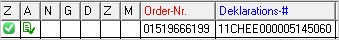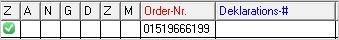 Der aktuelle Status des Auftrages wird mittels Symbolen angezeigt. Sobald alle internen Prüfungen erfolgreich abgeschlossen wurden, wird in der 1. Spalte ein grünes Symbol angezeigt. Nun kann die Sendung zum Export angemeldet werden.